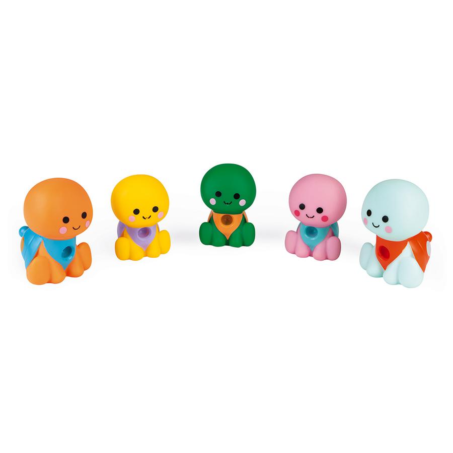 Your child will play in his bath for hours with these 5 pretty turtles to assemble and separate endlessly! By pressing on their belly, they spit water! These little turtles will develop your child’s motor skills and dexterity while ensuring hours of play and fun in the bath.