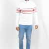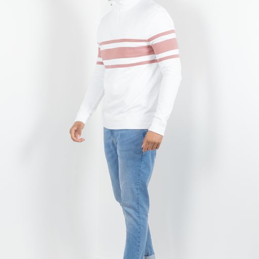 Conway Stripe Half Zip This striped jersey half-zip comes in three colours and is the perfect lightweight sweat for summer. It has 3 contrasting colour stripes with fabric cuffs and hem. The zip is concealed under a placket. Stitch details on the side hem and label add a little extra finesse.100% Cotton, Half zip neck opening Regular fit Lightweight sweat fabric