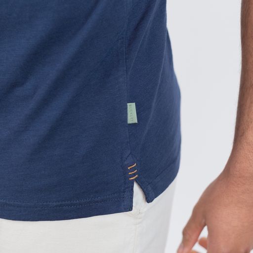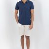 Ezra Short Sleeve Polo Our short sleeve polo features an open neck giving a relaxed feel to an otherwise wardrobe staple. It’s made from 100% cotton slub, so has a subtle texture running throughout the fabric. Short sleeves with rib cuffs, rib collar and placket. Stitch detail and label on the side seams add a bit of finesse. Pair with our chino or linen shorts for an easy relaxed summer look.