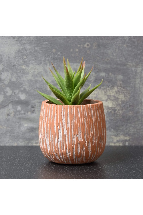 Aloe Vera Succulent in Textured Cement Pot Red