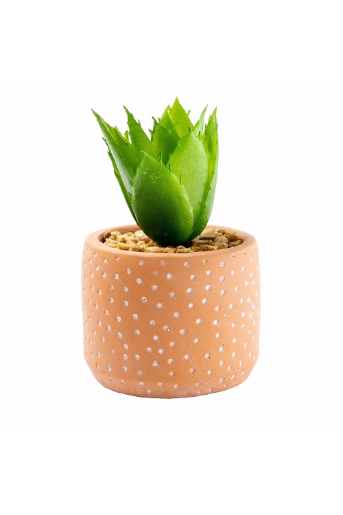 The spikey succulent in spotty cement pot is a beautiful addition to any home that will give it a natural earthy touch. The spikey green succulent sits in a round textured pot. This artificial plant can be placed anywhere to give a subtle hint of colour.