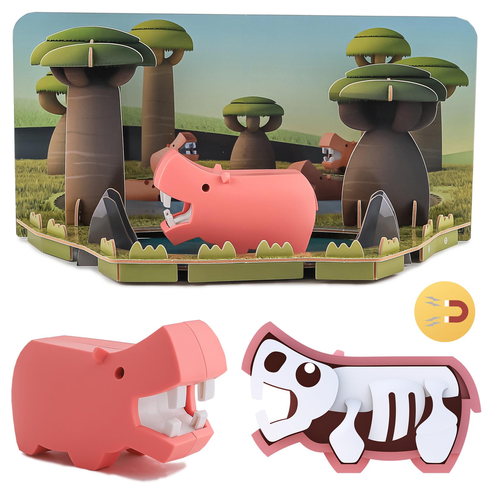 Halftoy are well-made with quality-grade, non-toxic plastic materials in several bright colors. Each skeleton is encased in a smooth magnetic body shell. Simply pull the bones out and apart, and then snap them back together again and again. Click them back in the shell to keep the bones safe and snug. The bundle combines both educational and enriching play styles along with its 3D Diorama landscape.
