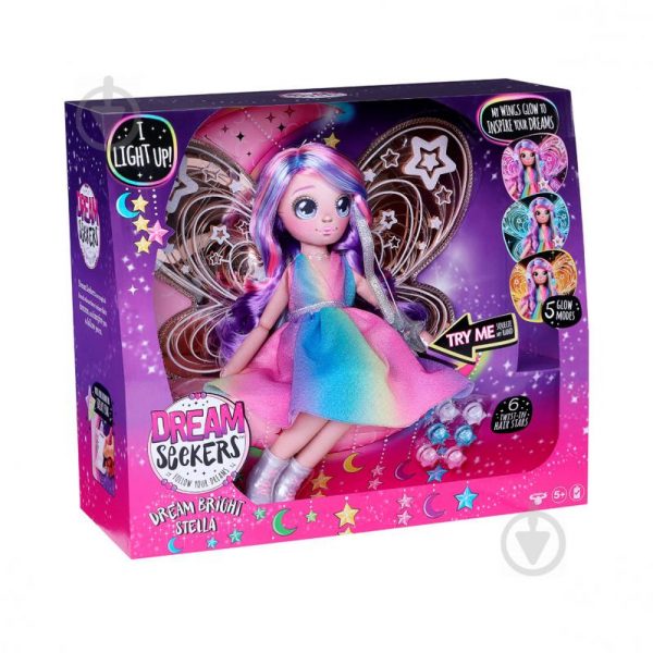1 Winged Doll, Detachable Hairband, Comb, 3 Hair Clips, Detachable Shoes, Detachable Skirt, Doll Packaging Stand with Secret Storage Pocket