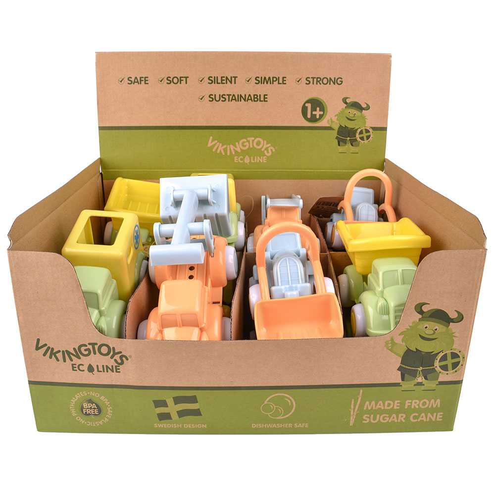 Viking Toys Ecoline Maxi’s are sustainable, non-toxic and kid-powered, made from sugar canes, a renewable resource. These cars are a perfect choice for sustainable kid powered play. 14 cm long and perfect for toddlers and their little hands. The inviting clear colors together with its simplicity adds educational play value and fosters creativity. All that’s needed for a safe and fun playtime. By playing with Maxi’s in soft durable plastic, the children develop their fine motor skills in a playful way, which contributes to better coordination, dexterity, and understanding of cause and effect.
