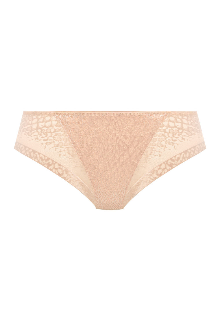 Integral stretch band in lace allows for a flat clean finish at front leg