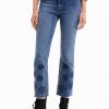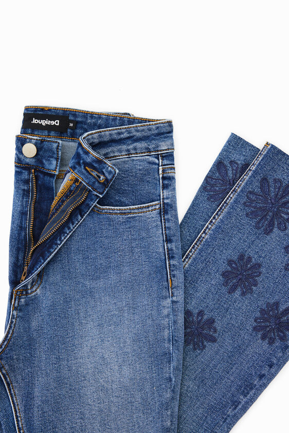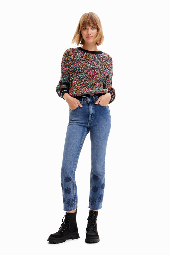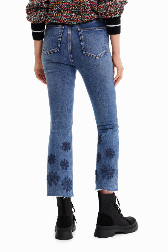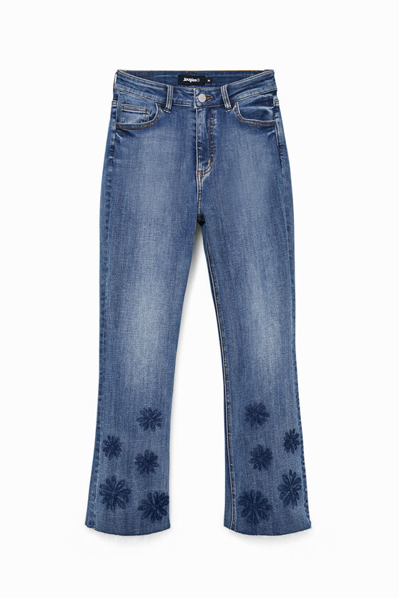 Fitted jeans with a high waist, cropped raw-cut flared hem and a comfortable stretch knit fabric. Made from sustainable cotton.