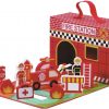 This beautifully crafted fire station playset is made with high quality wood and cardboard.