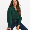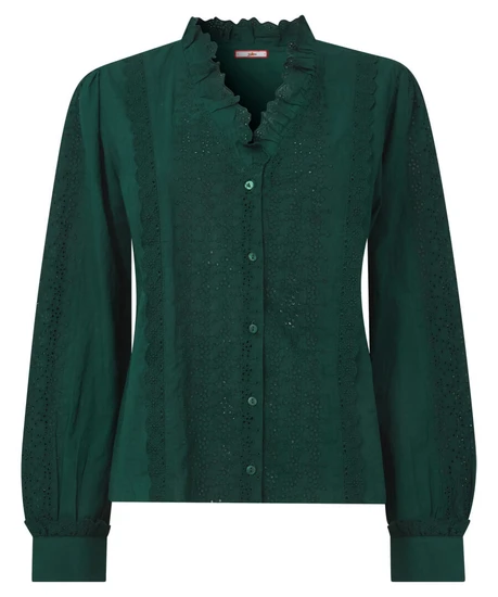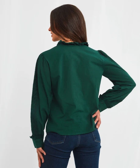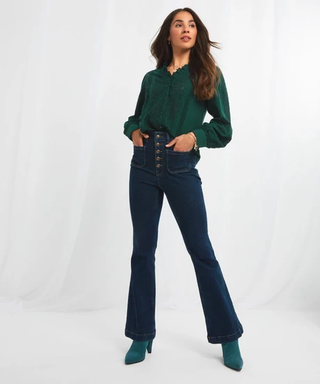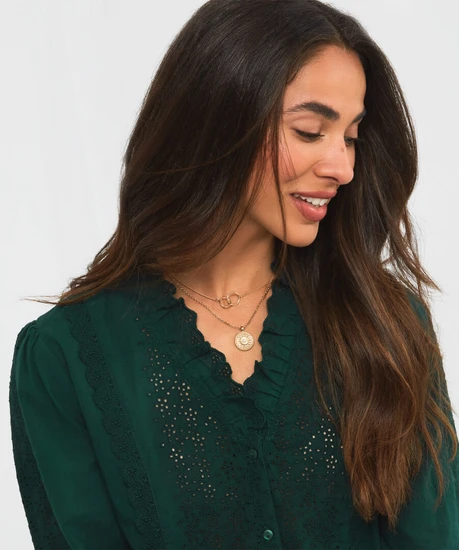 This vintage-inspired broderie blouse is sure to make you feel fabulous. You’ll love the statement frills on the front, sleeves and neckline – alongside the loose sleeves and striking colour, this ladies’ blouse creates a real stand out style. Try pairing it with black jeans and boots for a sophisticated evening look.