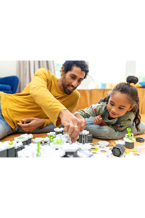 This STEM system [Science, Technology, Engineering and Maths] is an ideal one to teach kids about gravity, magnetism, kinetic energy and fun. Hit a snag? Freestyle with your own track design or use the tasks and blueprints included to help you to get started in the world of GraviTrax! Are the gravity spheres stopping or flying off before reaching the end target? Time for some problem solving. Rebuild and try something different! The GraviTrax track system can be extended indefinitely with extra track packs and add-on’s – each sold separately. This set is suitable for 1+ players, ages 8 years and up. Fully complies with all necessary UK and EU testing standards. 1x Dipper, 4x Height tiles & Instructions