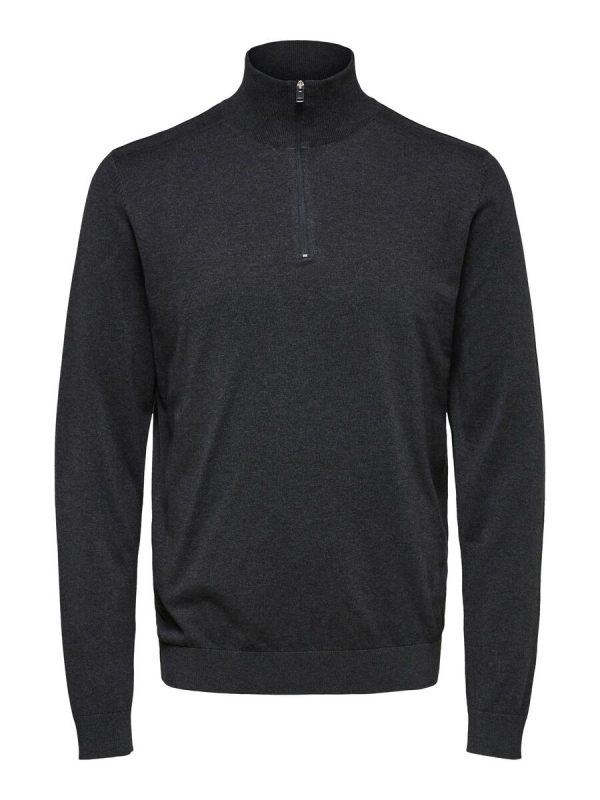 – Half zip knit – Made of soft pima cotton – Ribbed hem, collar and cuffs – The model is 186 cm and wears a size L