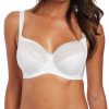 Flat lace top cup features an integral stretch band along neck edge for ease of fit making this bra perfect for all bust shapes
