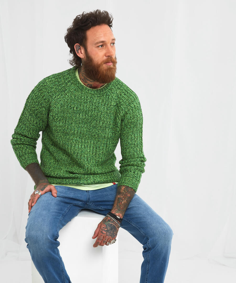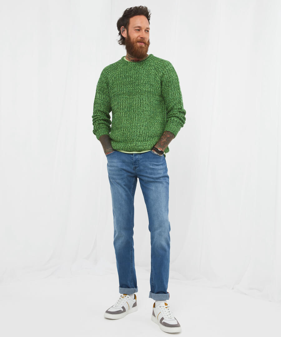 This colourful crew neck jumper is equal parts comfortable and stylish. Made from a chunky rib knit, it'll keep you warm without being too heavy, so it's easy to layer with your favourite tee and jacket. In a remarkable combination of three different colours, it's a jumper that'll turn heads for all the right reasons.