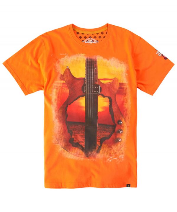 This short-sleeved t-shirt is perfect for music lovers and great to wear for a campfire singalong. In the fiery colours of a seasonal sunset, it’s just what you need to make the most of those warm summer nights. Just add jeans and watch your chill style heat up.