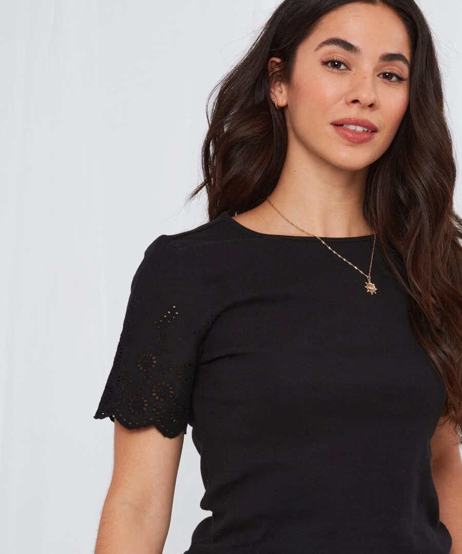 A timeless classic that’ll never go out of style, this plain white tee features beautiful broderie detail on the sleeves to add a touch of feminine springtime flair. Finished with those all-important features, from the soft fabric to the relaxed fit, this is one staple style you can’t go without.
