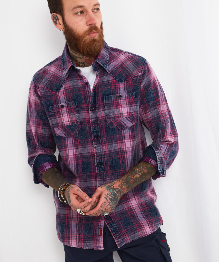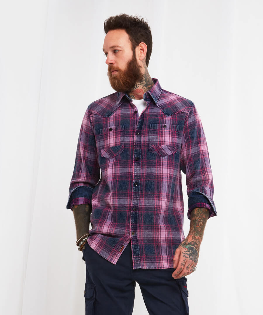 Add this men’s shirt with checked style to your clothing collection to diversify your style. Bringing a fresh feel to Western styling, we love the contrast between the bold, indigo checks and the vintage finish of the washed fabric. There are so many ways to wear this shirt, but try it over your favourite JB tee for a smart-casual look that’ll really grab attention.