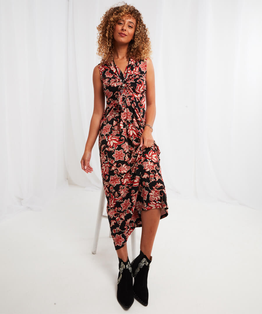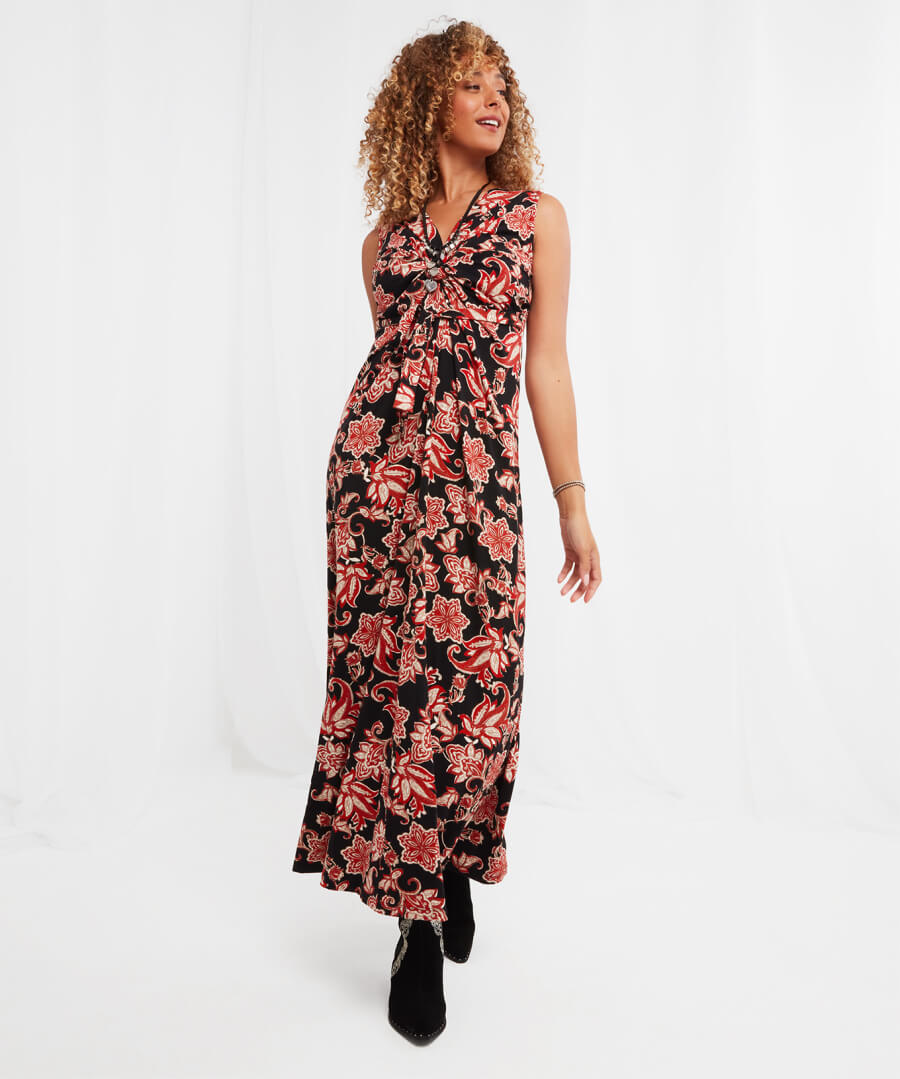 This sleeveless maxi dress radiates everyday elegance and features a stunning print and a pretty knot. Crafted in a soft fabric and finished with a belt to flatter your figure, it’s a maxi dress that’ll make you feel equally comfortable and confident, whether you wear it with heels or sandals, a jacket or a cardigan.