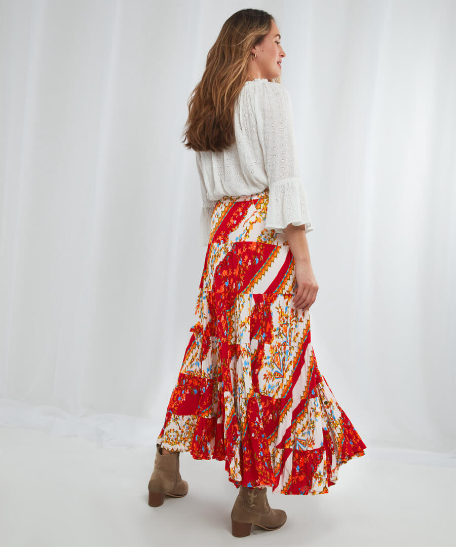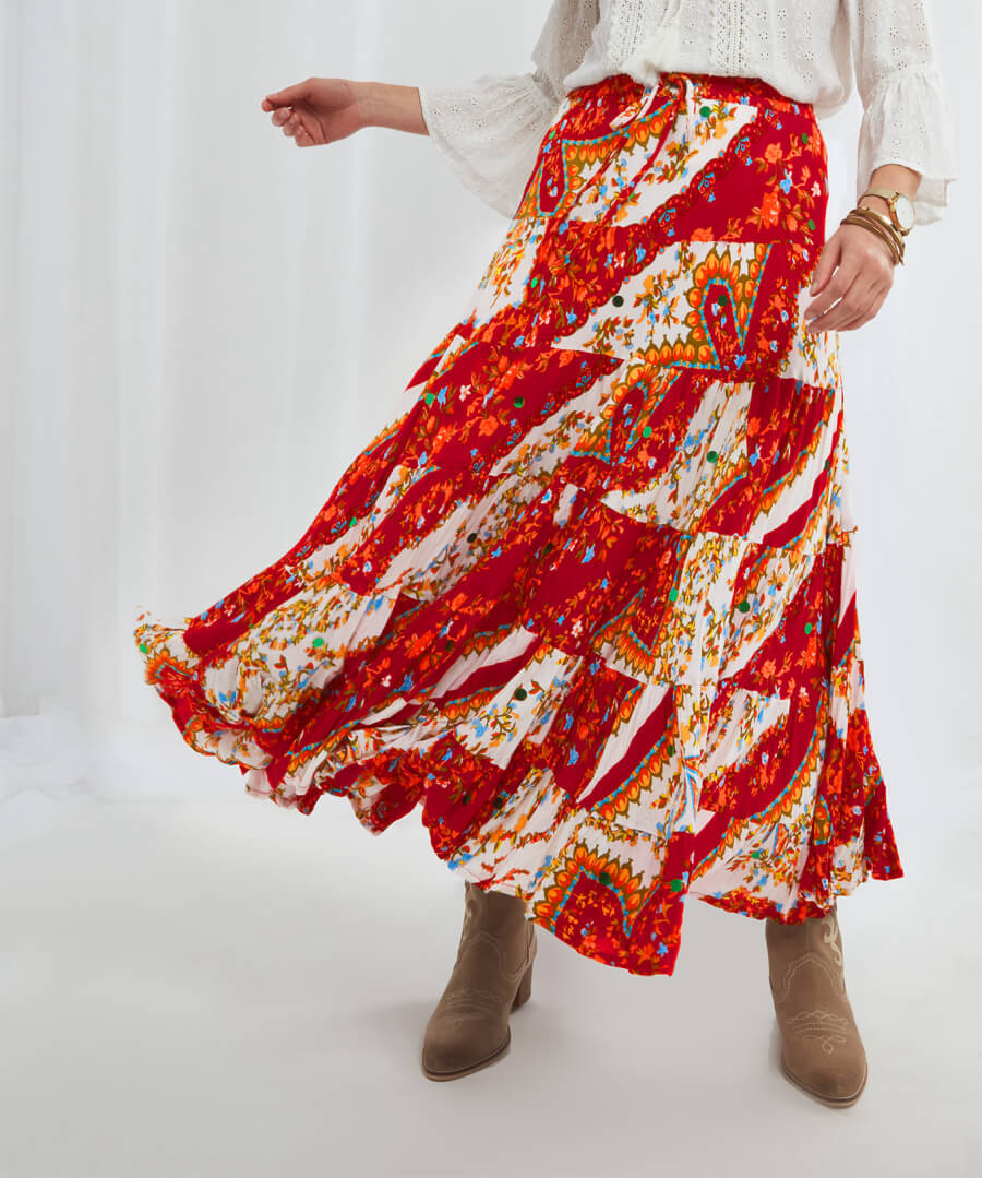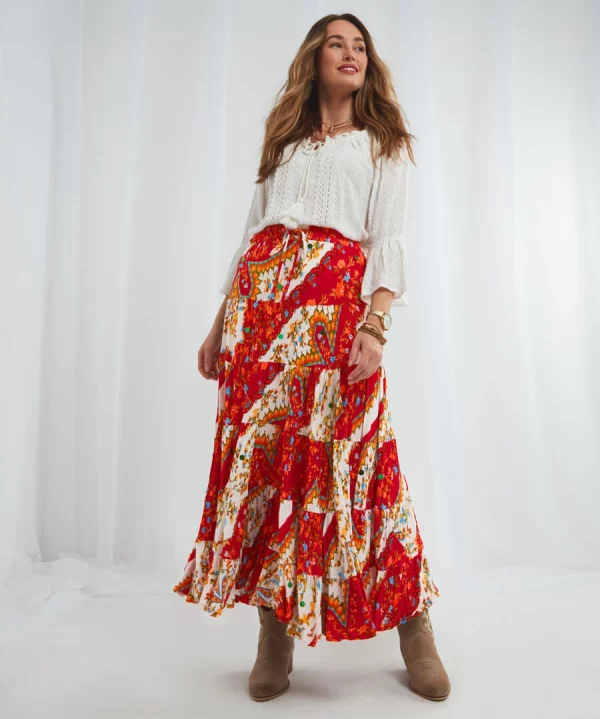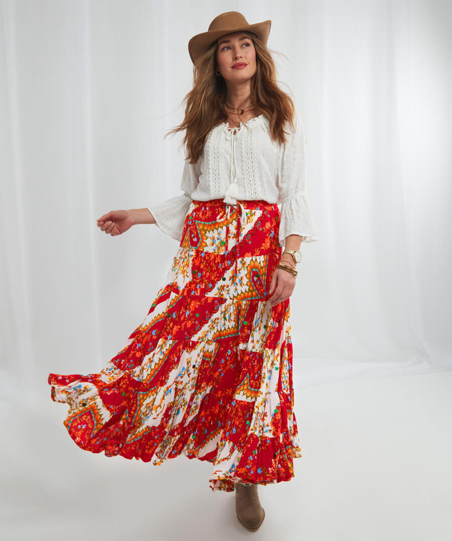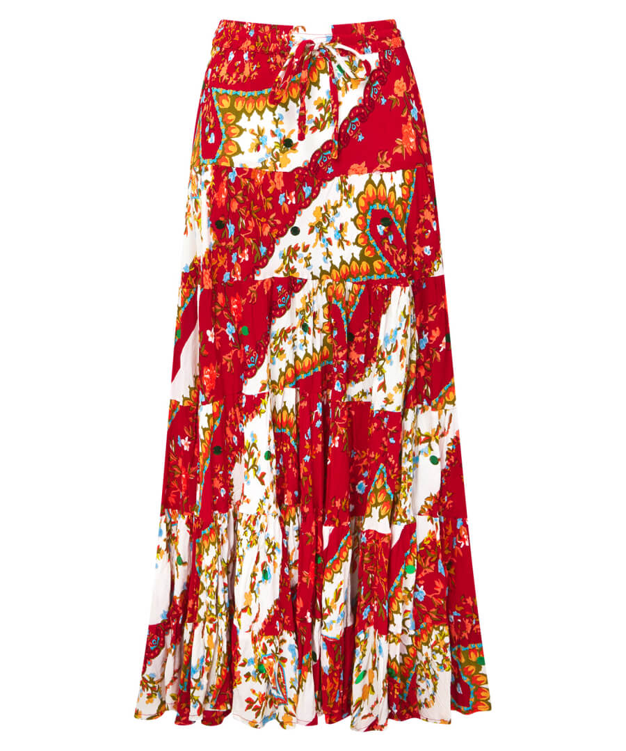 Looking for a new patchwork skirt to take on holiday? You can’t get any better than our boho skirt! Not only is it comfortable with an elasticated waist and a tie at the front, but it looks amazing too, with lovely tiered skirt detailing and a remarkable print. It’ll look right at home relaxing on the beach or exploring new cities.