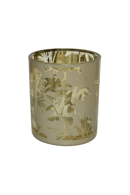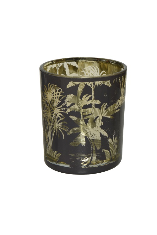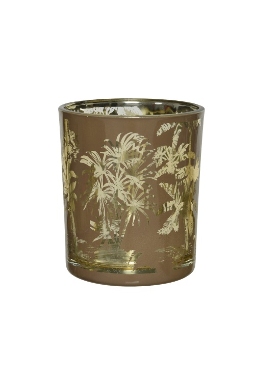 Tealightholder Glass Round Palm Laser Design 3Col Ass