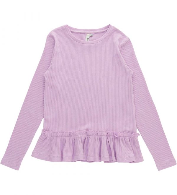 The Little Pieces blouse has long sleeves and a round neckline with a narrow ribbed edge. It has a seam into the bottom of the blouse, so it sheep a bit of width and fine folds. The Blouse is made in a soft cotton quality.