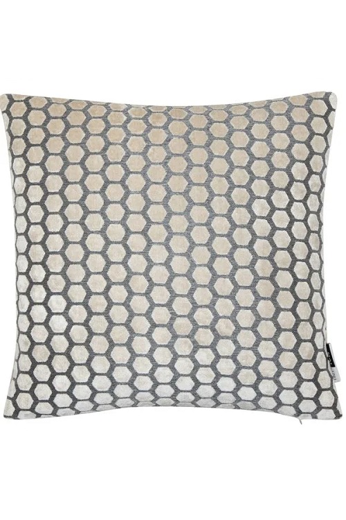 Textured cut velvet cushion with a geometric hexagonal pattern
