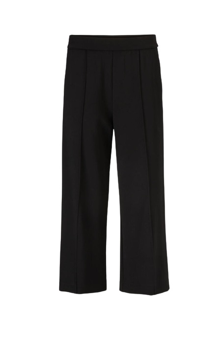 Looking for a stylish pair of trousers that fit like a dream? Then these trousers in a soft, thick jersey fabric are a great choice. The trousers fit snugly against the body at the top, while the legs offer extra width. They have just the right cropped length for a peek at the ankles. The trousers are also designed with in-seam pockets, stitched creases, and pleats at the back, making them fit beautifully. A gorgeous plain-coloured pair of trousers that will make you look for any occasion.