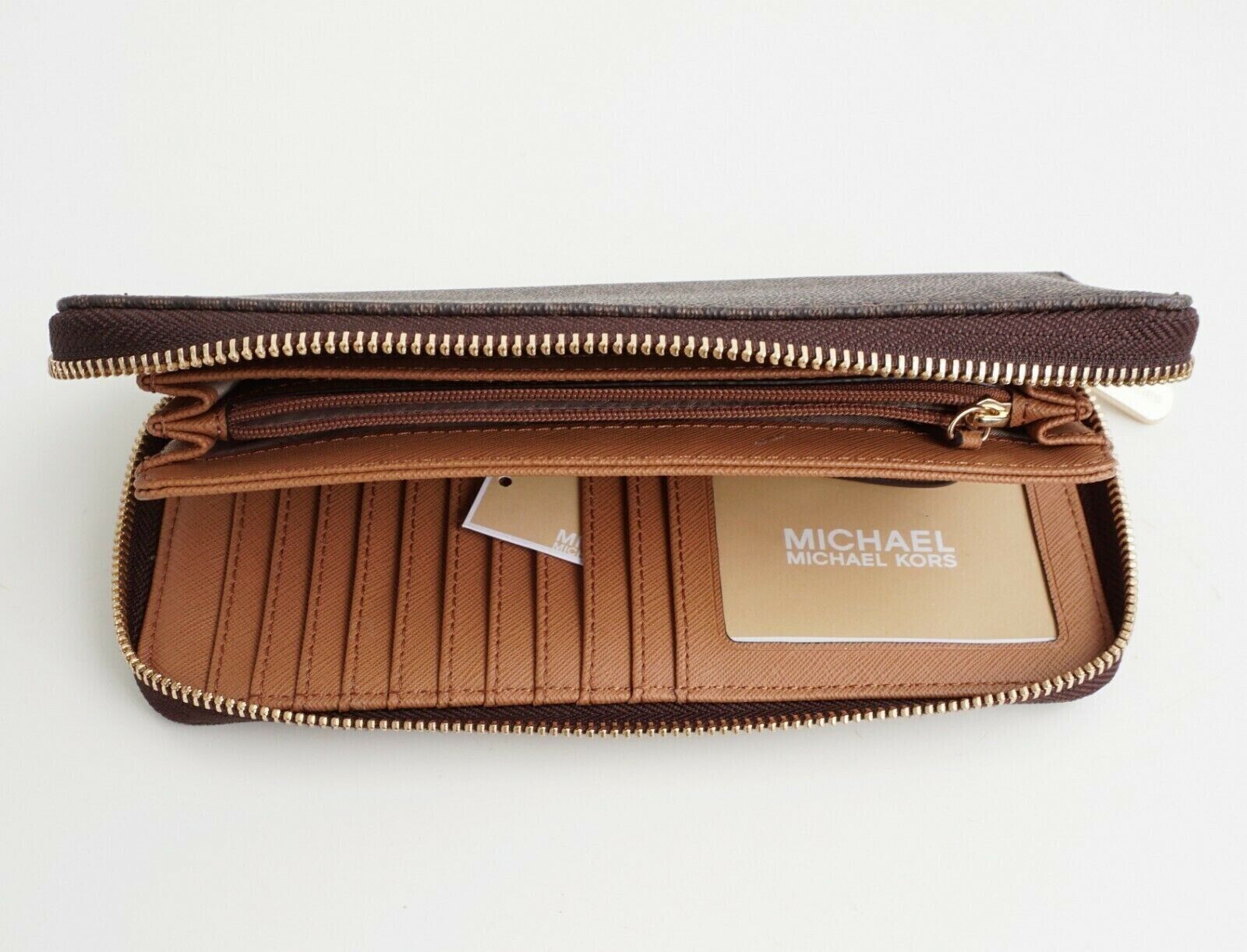 - Zip around style with iconic logo on the front and a removable wristlet strap