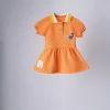 Beige lobster print knitted dress for baby girls from Moi Noi. Featuring a round neck, button closure, and allover lobster print. Made with organic cotton, this set is manufactured free of nickel and carcinogenic accessories, and no toxic printing or dying process. This product is OEKO-TEX and EAC certified.