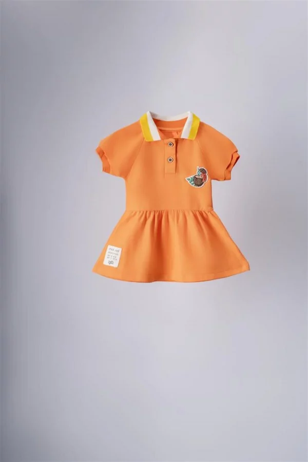 Beige lobster print knitted dress for baby girls from Moi Noi. Featuring a round neck, button closure, and allover lobster print. Made with organic cotton, this set is manufactured free of nickel and carcinogenic accessories, and no toxic printing or dying process. This product is OEKO-TEX and EAC certified.