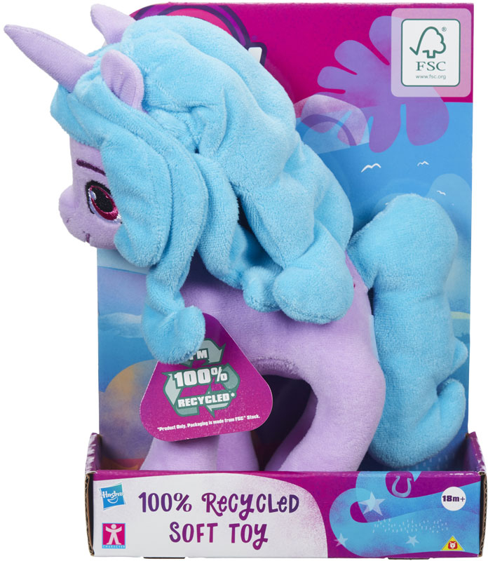 The Eco range of soft cuddly toys are excellent quality and made with 100% recycled materials. Fashioned for young My Little Pony fans whilst staying true to the authentic My Little Pony styling, these environmentally friendly toys aim to bring super soft fun to playtime. What’s more, packaging is made from sustinable FSC® certified card.