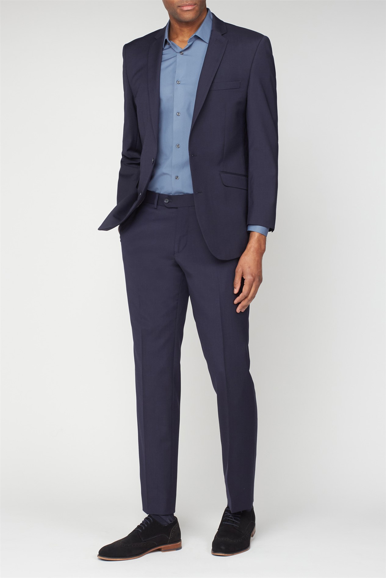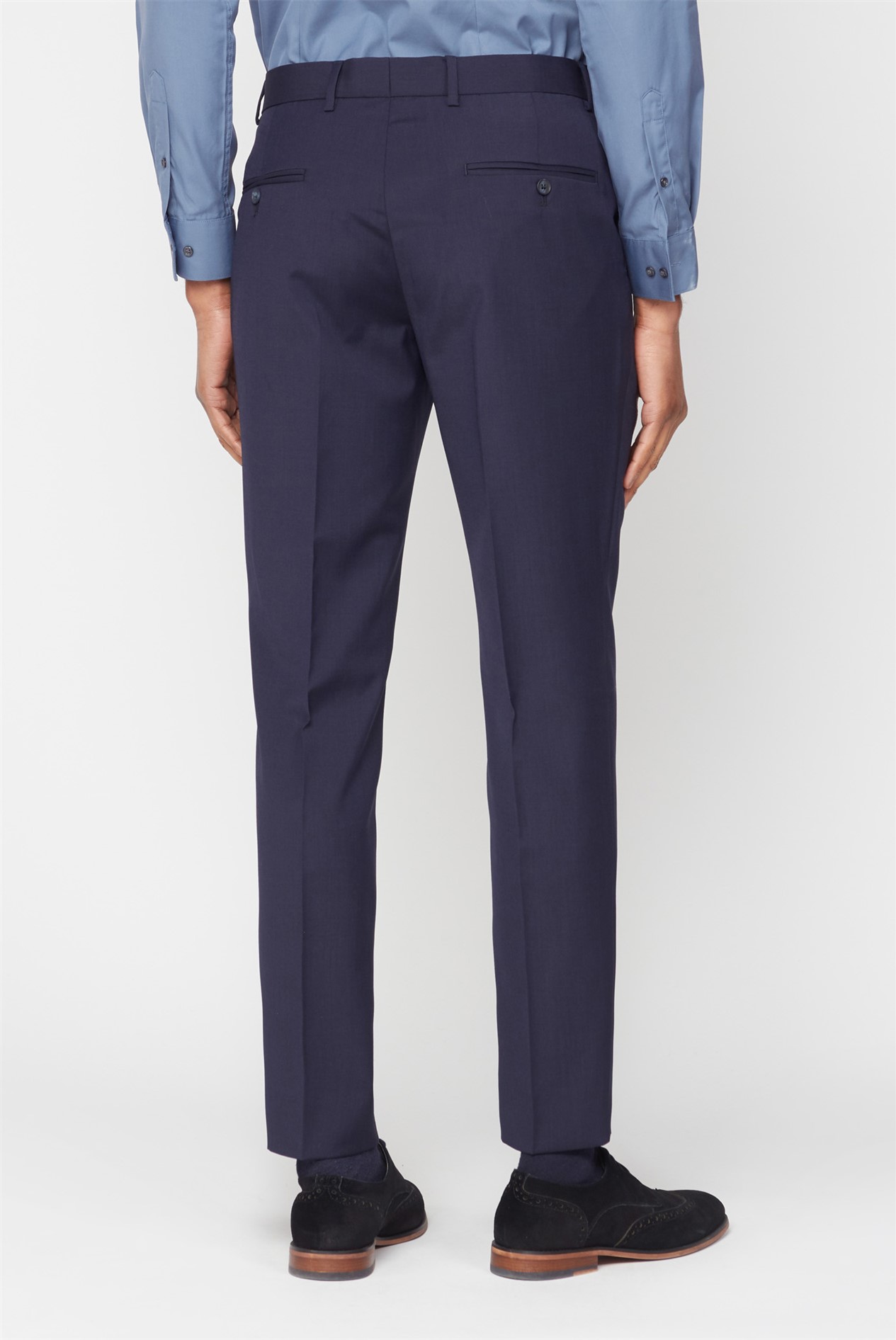 This men’s plain trouser in classic navy features our premier fit with a plain front, two hip pockets and 16’ bottoms. Pair with traditional black brogues and a patterned shirt for the perfect smart-casual outfit.