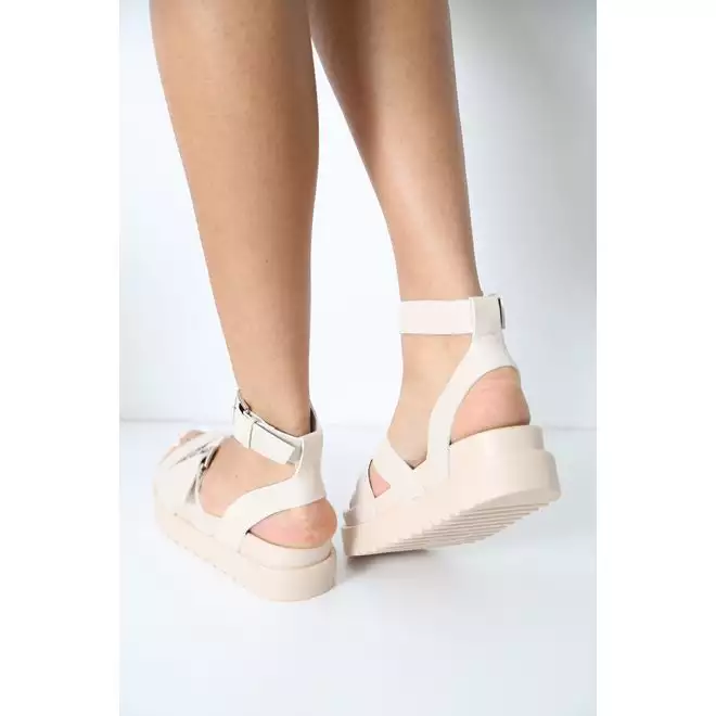 Women’s chunky sandals. Featuring chunky platform sole, thick straps and buckle fastening in a black textured pu finish. • Colour: Cream PU• Heel Height: Approx 1.5 inches• Packaging: Box• Fastening: Buckle• Upper Material: Synthetic• Lining Material: Synthetic• Sole: Rubber• Range: SS2023