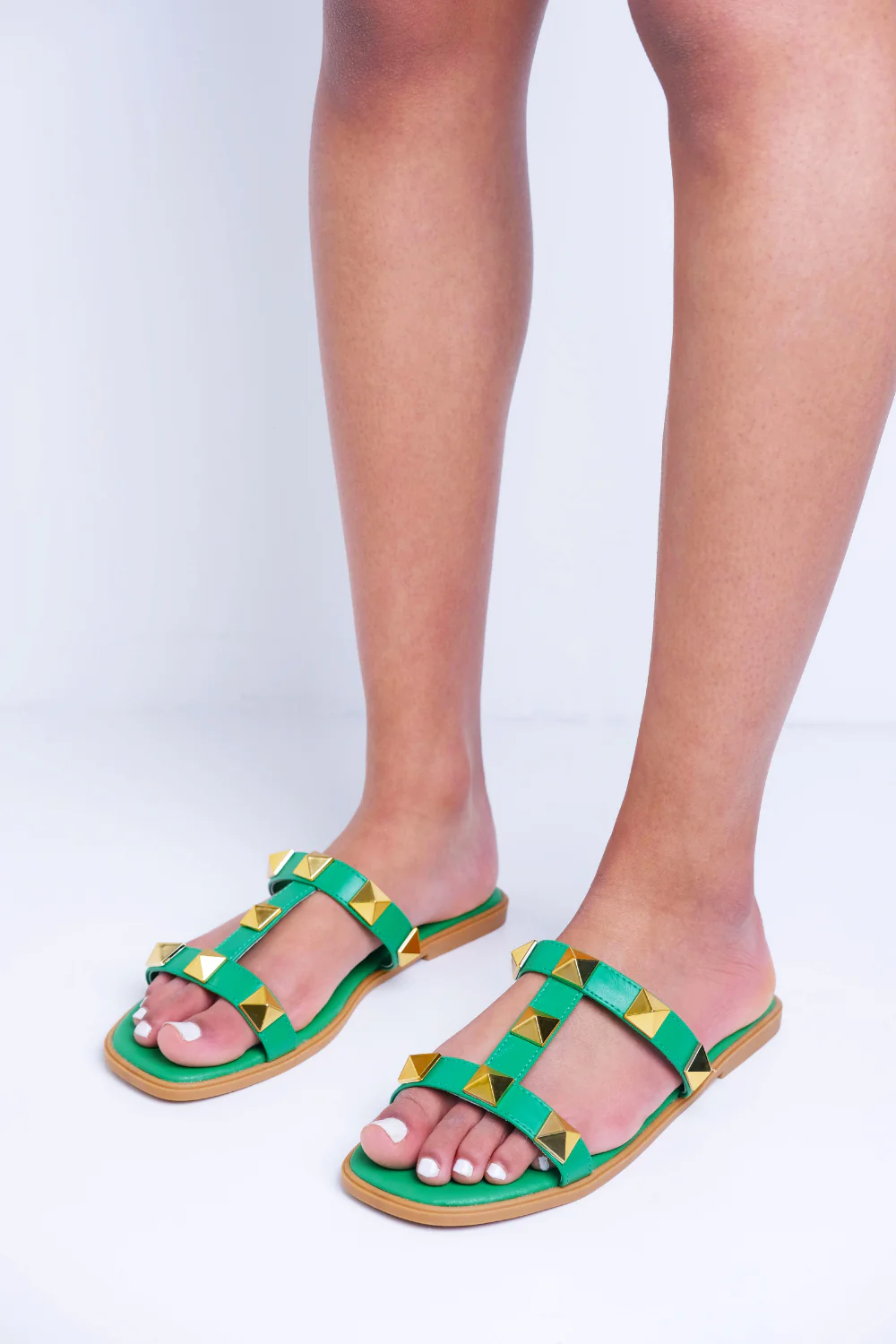 No-doubt Green Bee Flatform Studded Strappy Sandal Sliders