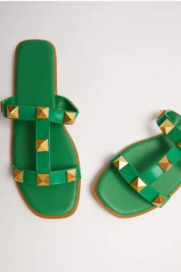 No-doubt Green Bee Flatform Studded Strappy Sandal Sliders