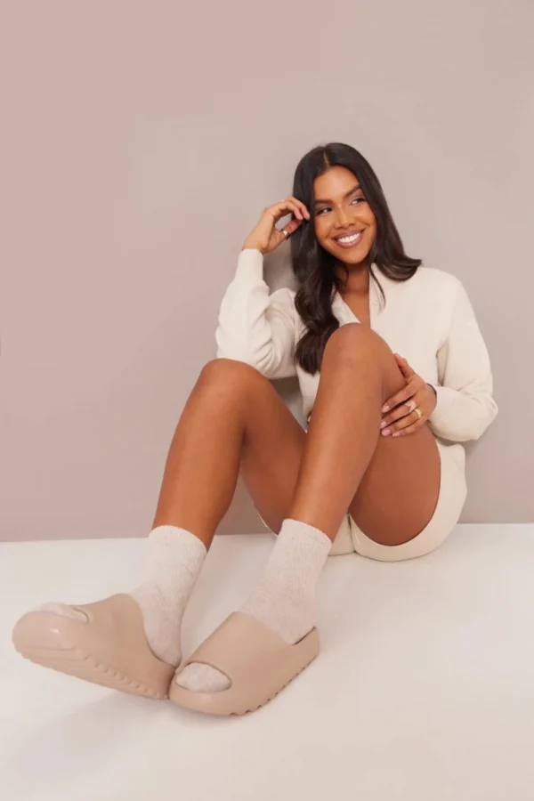 No-doubt Mocha Flat Sole Rubber Slider Sandals