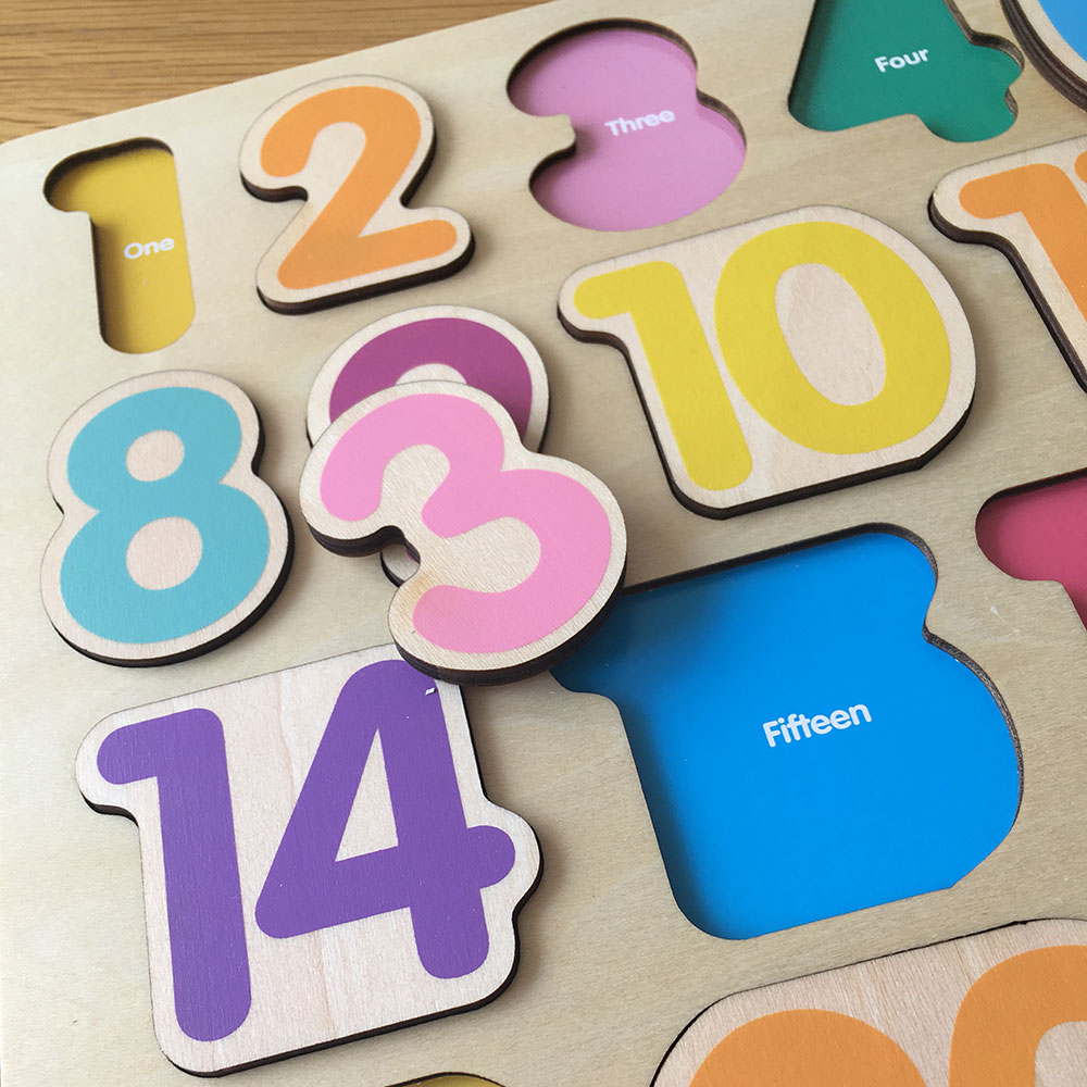 This beautiful number puzzle board features numbers one to twenty, as well as plus, minus and equals symbols for extended learning.