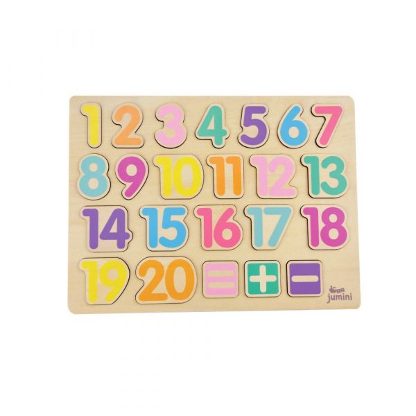 This beautiful number puzzle board features numbers one to twenty, as well as plus, minus and equals symbols for extended learning.