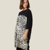 Always expect the unexpected– like this gorgeous jersey dress, which mixes minimalist black with a sharp graphic pattern. The oversize cut falls loosely and beautifully over your body. It is designed with simple sleeves and a round neck, allowing the beautiful print to steal all the attention. Wear the dress on its own for an effortlessly cool and feminine look.