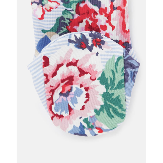 So sweet and part of the Peter Rabbit collection from Joules. This gorgeous floral sleeper featrues the Beatrix Potter characters. It is so soft in organic cotton and has a convenient zip closure!