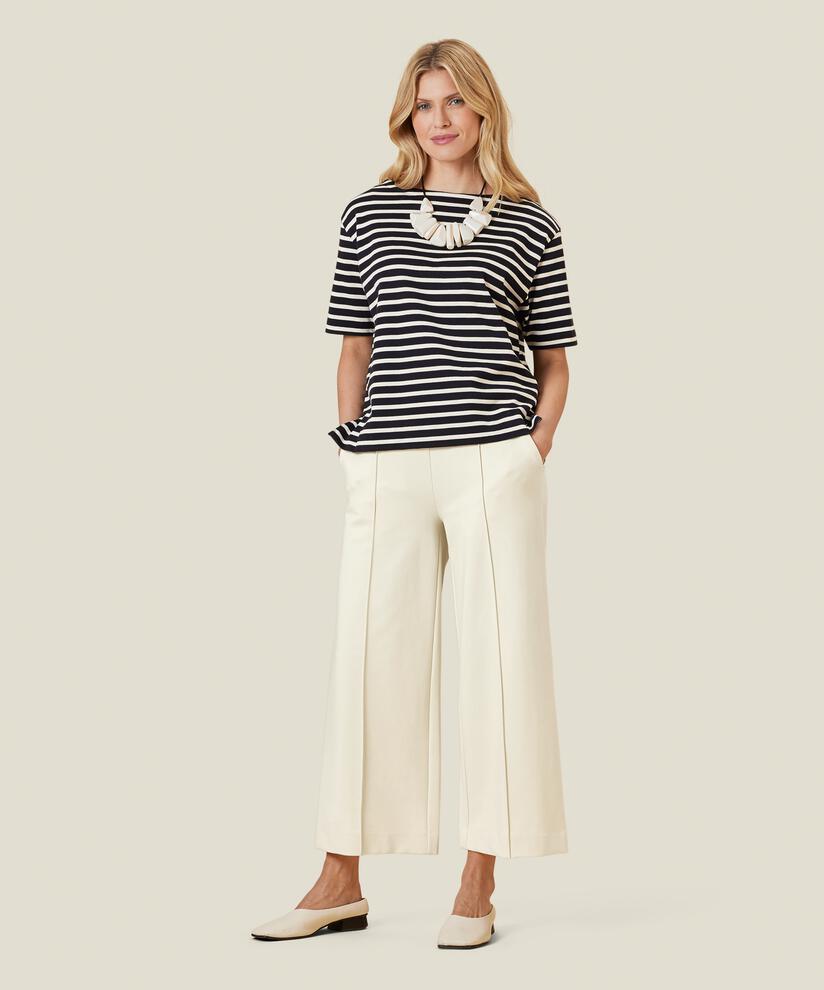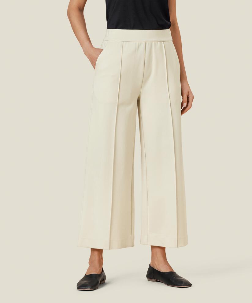 Looking for a stylish pair of trousers that fit like a dream? Then these soft trousers in thick jersey are a great choice. They fit snugly into the body at the top, while the legs offer extra width and a gorgeous cropped length. They are also designed with in-seam pockets, stitched creases and cleverly placed pleats on the back, making them extremely well-fitting. Whether you style them with a top, shirt or knit, you’ll get an effortlessly stylish look.