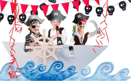 The pirate package is also available in a party version. This contains material for 4 pirate outfits