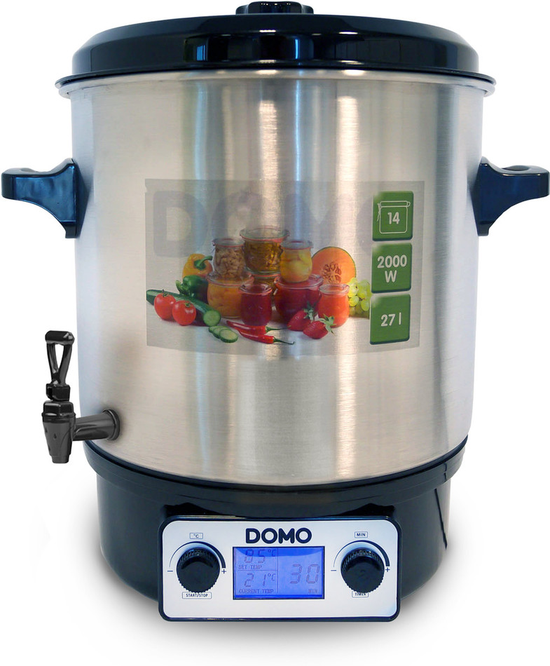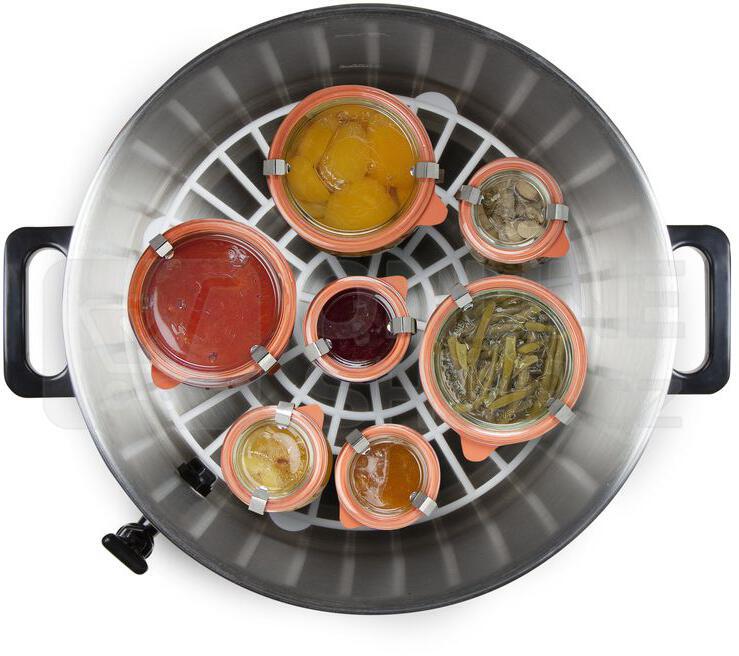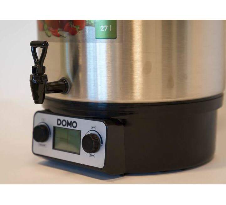 Fully automatic canning pot with clear LCD display and fully digital control. After reaching the set temperature, canning will automatically start for the set time – you set it once and start it, and the pot will take care of everything by itself. Thanks to the precise thermostat and the tap opening cover, this canning pot is suitable both for canning and sterilizing fruit and vegetables, as well as for heating hot drinks, stews and other sauces. The location of the tap on the side away from the display also increases the practicality of use.