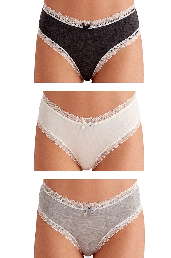 Soft touch viscose combines with a lovely lace trim for a truly vintage look. Available as a three pack Brazilian knicker.