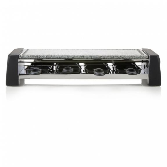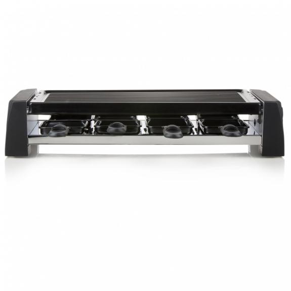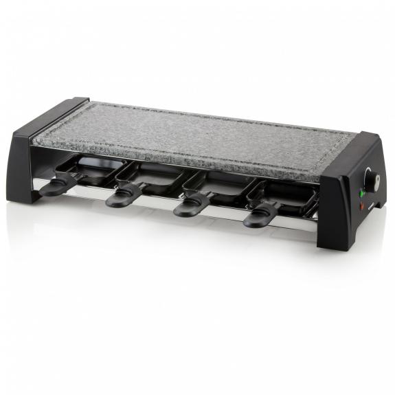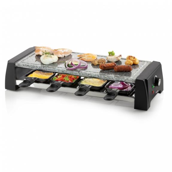 Including 8 raclette pans with non-stick coating and 8 wooden spatulas
