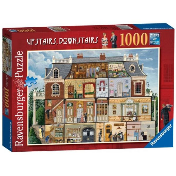 We can see every detail of life in a very grand house in this detailed and colourful design. Below stairs, the cook and her team prepare the meals, whilst the butler and his team review the day’s essential tasks. Upstairs, the lord and lady of the house await the arrival of their visitors, who are just approaching, and a footman takes refreshments to another member of the house, who is staying in her luxurious room.