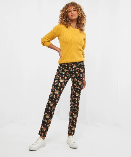 These straight leg rose print trousers make a remarkable addition to any woman’s wardrobe. It’s the statement floral print that makes them stand out – whether you pair them with a tee and cardigan, or a blouse and brogues, you’ll be showing off a truly unique look. Flattering, feminine and oh so fun, these trousers are designed to make you feel fabulous.