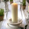 30cm hurricane lamp for a pillar candle. Hand turned sustainable mango wood base and hand blown glass funnel. Mango wood has lovely natural variations in cololour which should be appreciated.