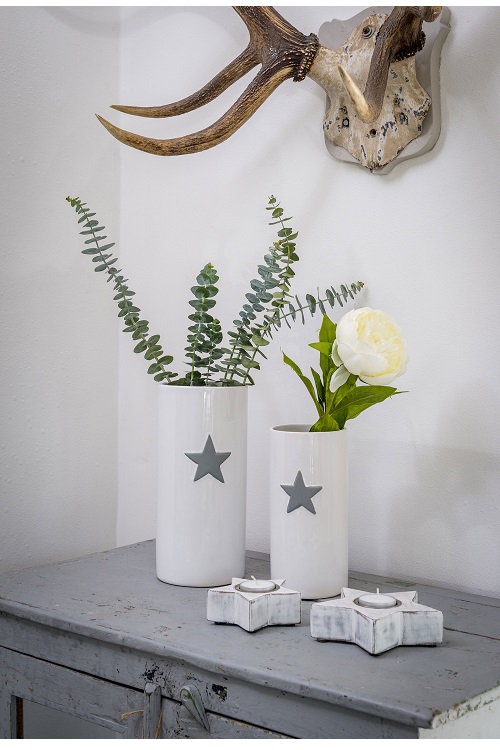 Retreat S/2 GreyStar WhiteCeramic Vase