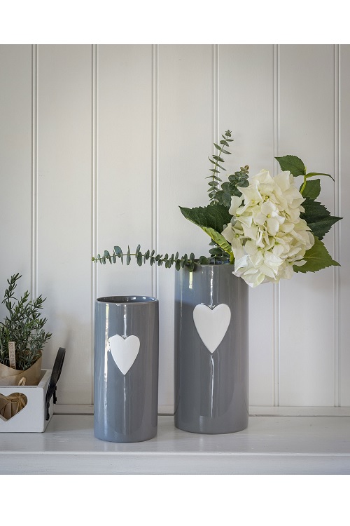 Retreat S/2WhiteHeartGreyCeramic Vase