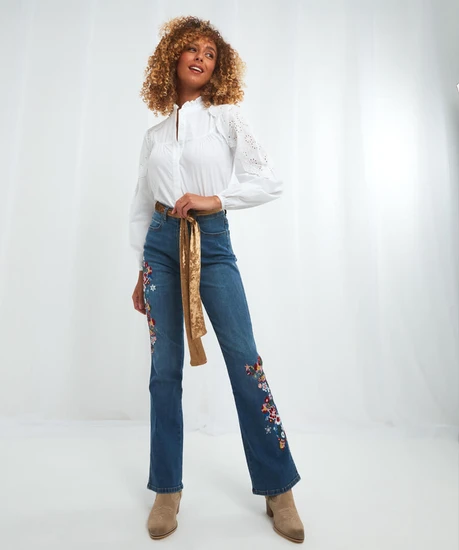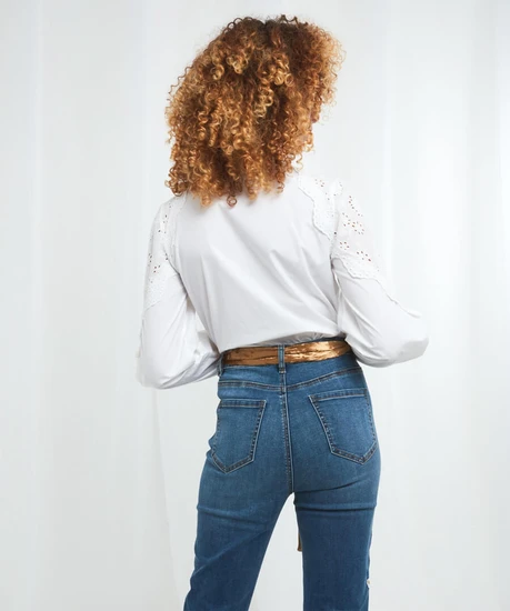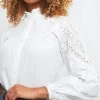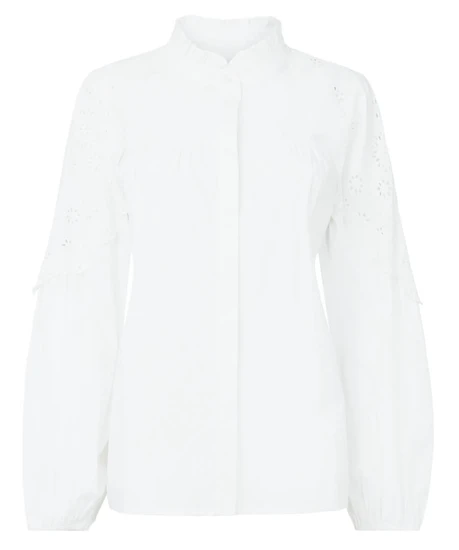Add a classic twist to any look with this devine retro shirt. This classic white shirt with ruffle collar and oversized sleeves gives us true retro vibes, but it’s the intricate broderie anglaise detailing on the shoulders that makes a signature Joe Browns statement. Pair this ruffle collar shirt with your favourite jeans for an effortlessly romantic look.