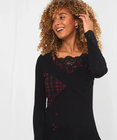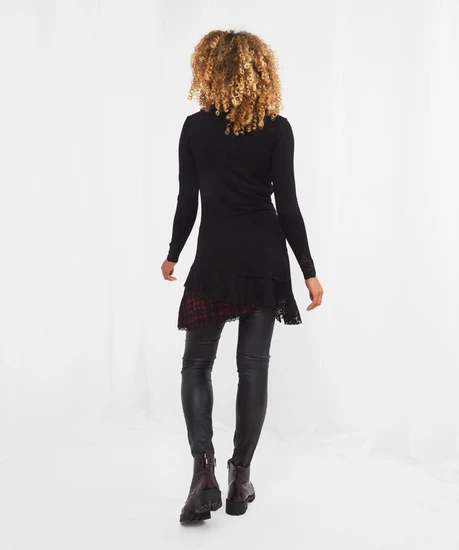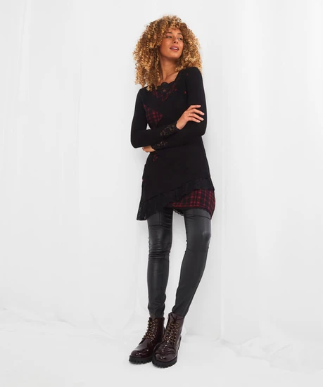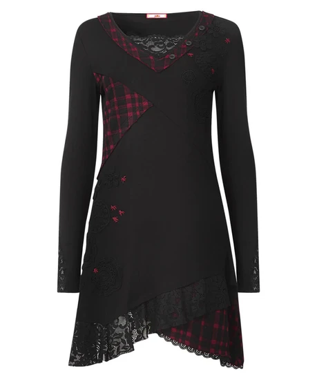 A red and black check tunic will help you to unleash your inner rock chick! This bold V-neck tunic adds real attitude to an outfit, with its pretty lace trim and embroidery detailing. Equal parts feminine and edgy, this check tunic is the perfect partner for tights and boots. Show off your unique style this season.